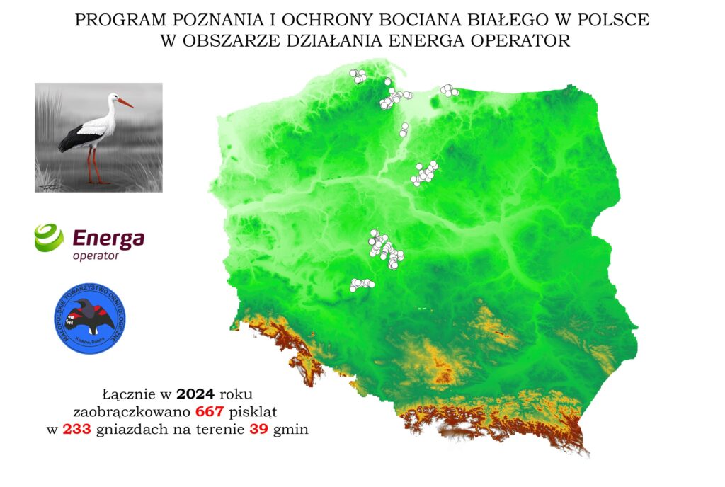 Małopolskie Towarzystwo Ornitologiczne (MTO) rozpoczęło współpracę w badaniach i ochronie bociana białego w obszarze działania Energa Operator w 2022 roku.