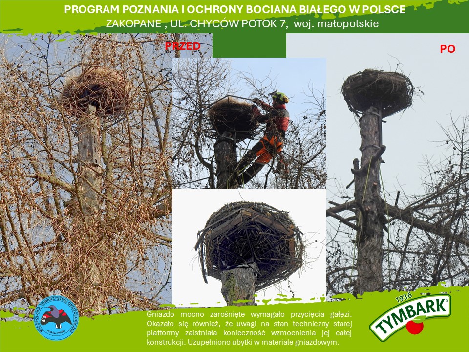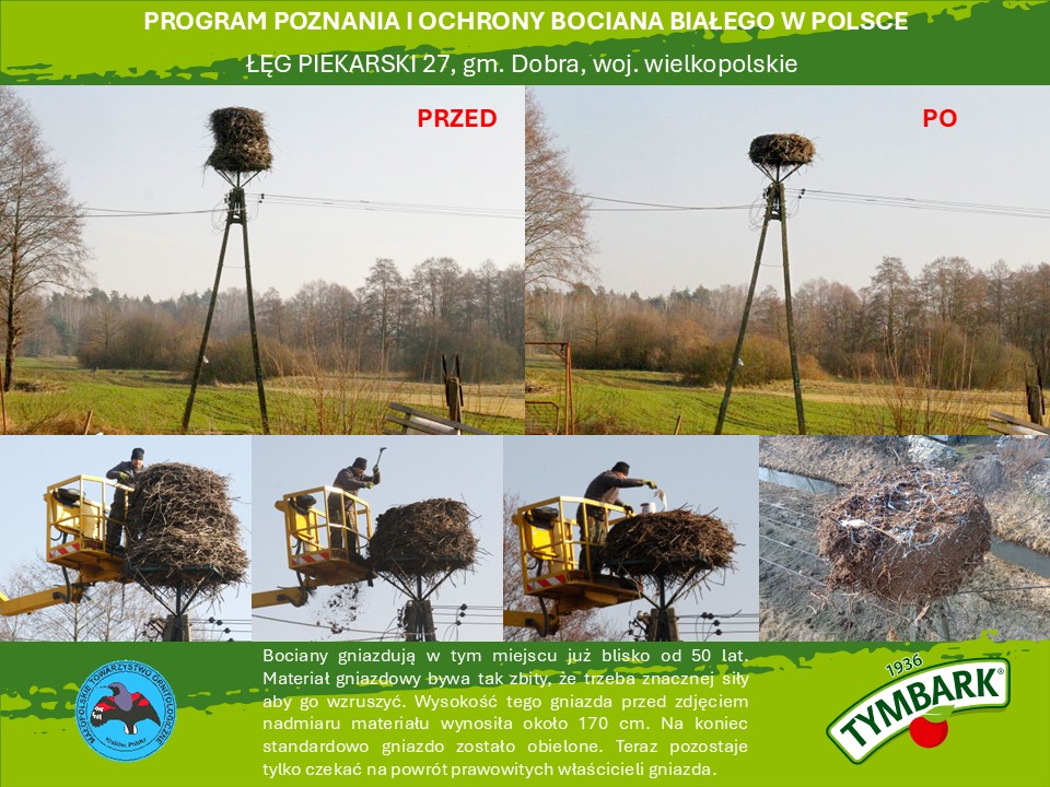 Wykorzystujemy warunki pogodowe. Udało się odremontować kolejne trzy bocianie gniazda. Każde o różnym stopniu „trudności” w przeprowadzeniu prac, każde w innych miejscach kraju, bo przecież „Program poznania i ochrony bociana białego w Polsce” to program o zasięgu ogólnopolskim. W kolejce czekają kolejne bocianie domy. A tymczasem fotorelacje z ostatnich prac.